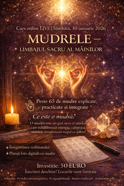✨ MUDRELE – LIMBAJUL SACRU AL MÂINILOR- Curs online LIVE | Sâmbătă, 10 ianuarie 2026